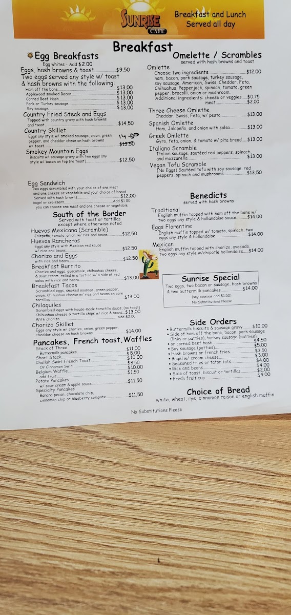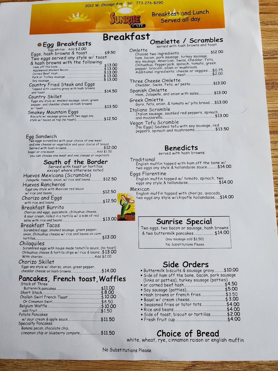 Introducing the Menu at Sunrise Cafe Chicago